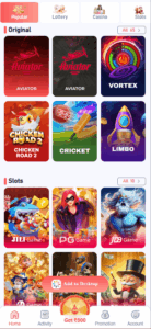 The interface is generally straightforward. The homepage displays available game options, countdown timers for active rounds, wallet balance, and recent results. This organised layout helps users navigate the platform without confusion.